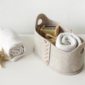 The storage basket is perfect for modern interiors. The baskets can work in almost every space – in the bathroom, kitchen, nursery or mudroom.